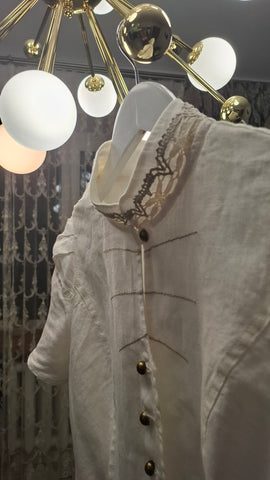 Dekoratyvūs nėriniai ties kaklu ir liemeniu