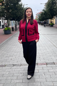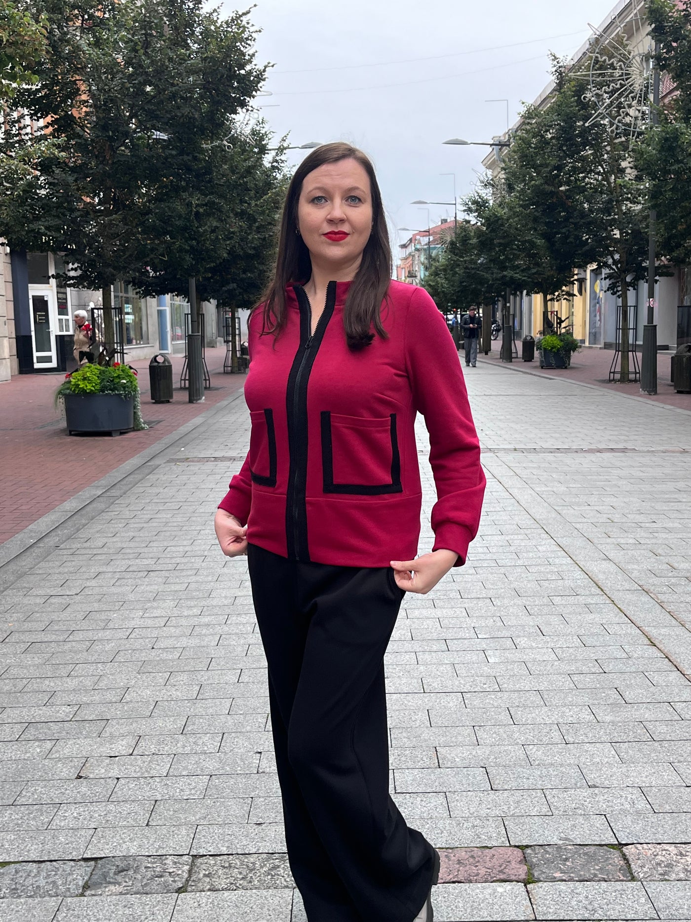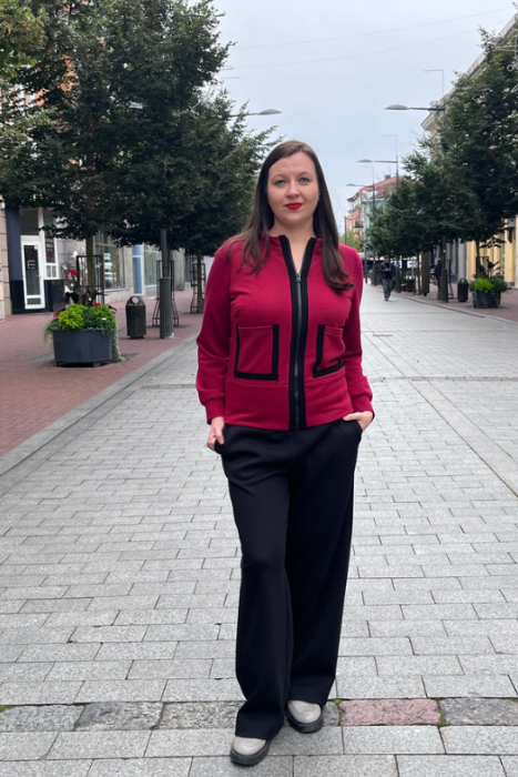 Moteriškas laisvalaikio kostiumas, patogus derinys su kelnėmis ir užtrauktuku - 36 / bordo + juoda