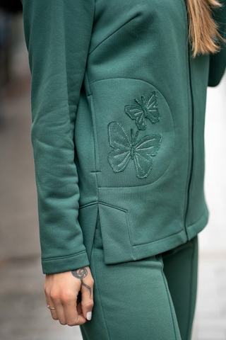 Laisvalaikio kostiumas su drugeliais – patogus ir stilingas - 36 / Antikinė žalia