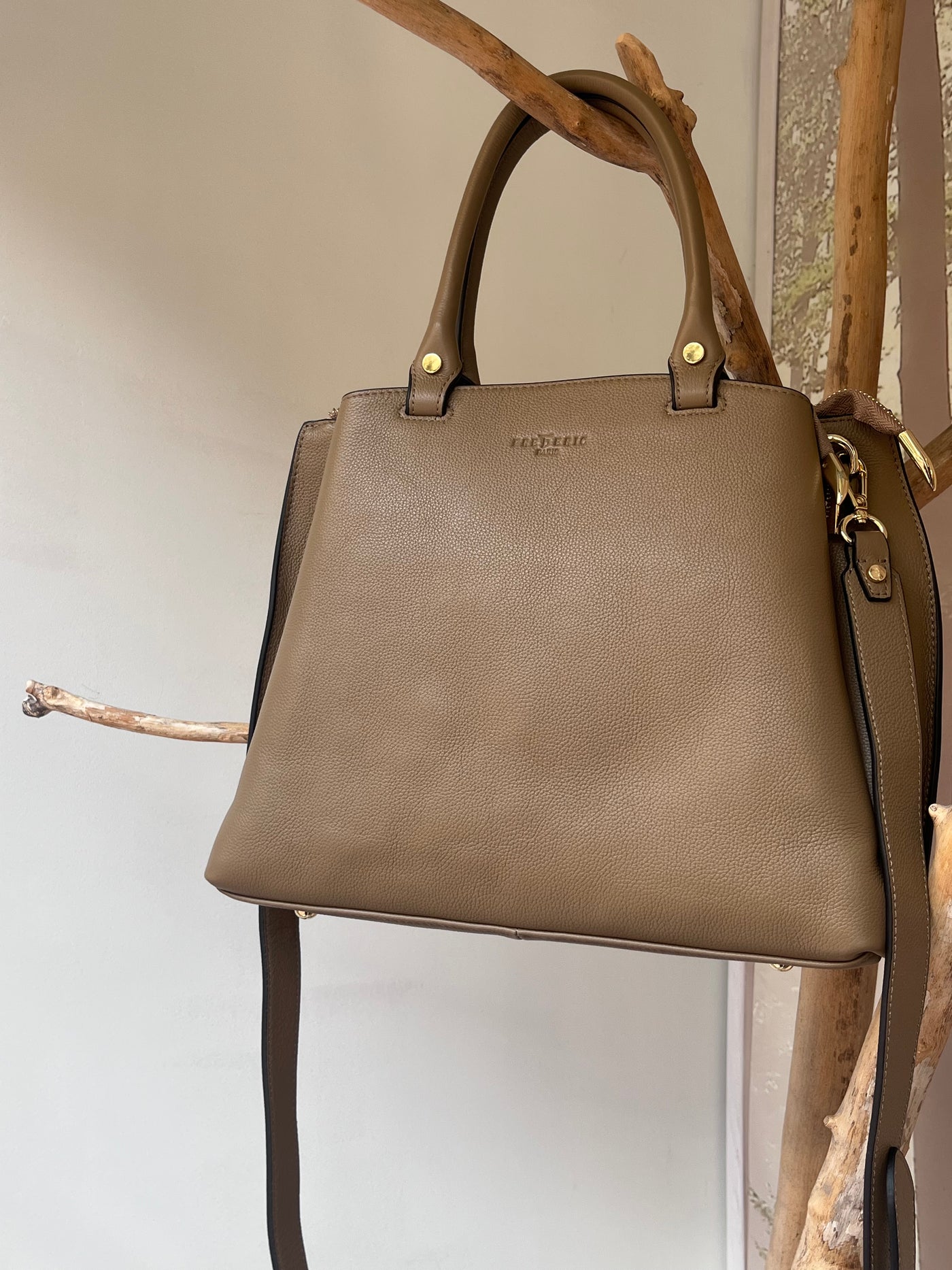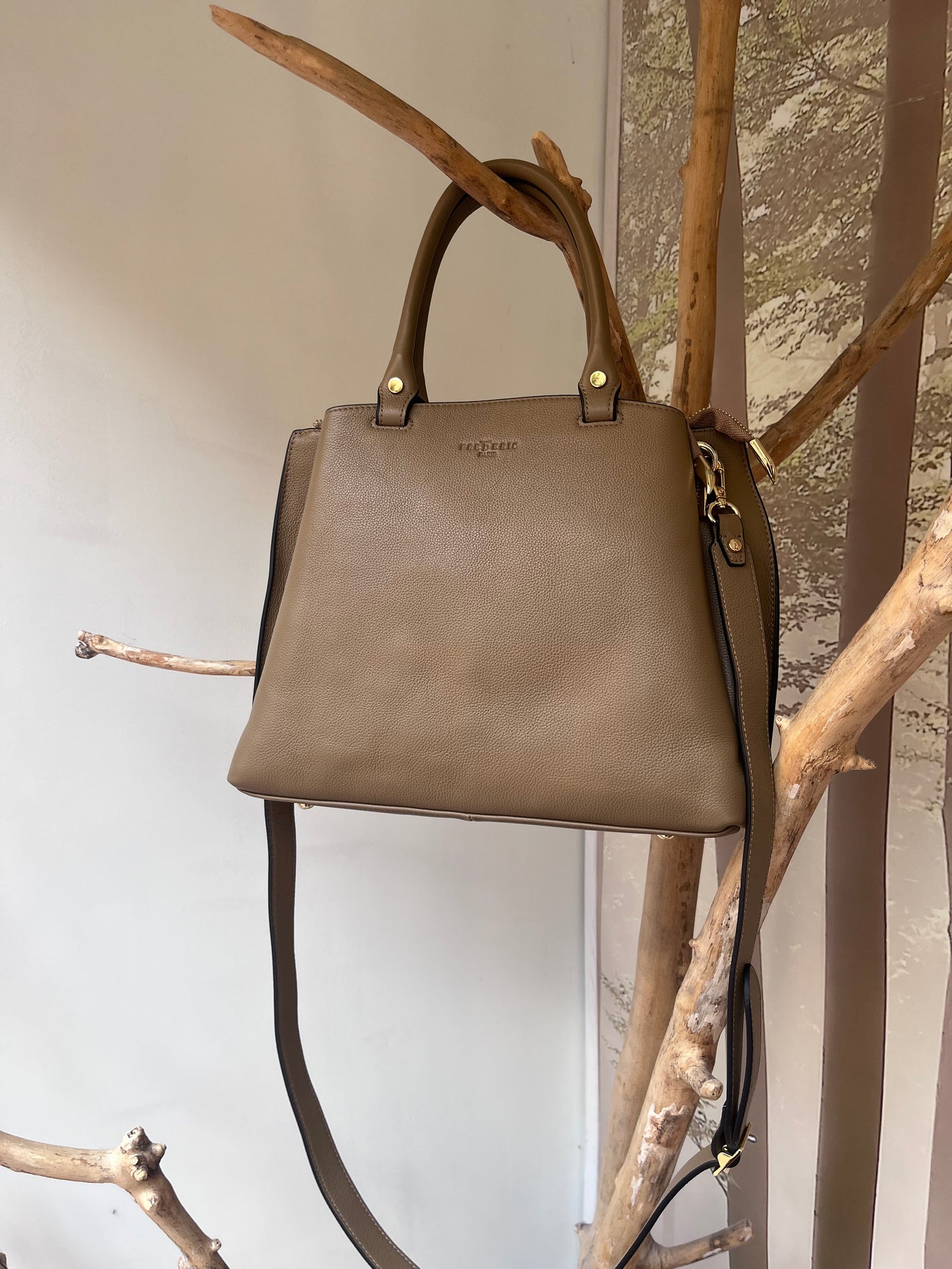 Taupe natūralios odos rankinė su dviem skyriais Išpardavimas
