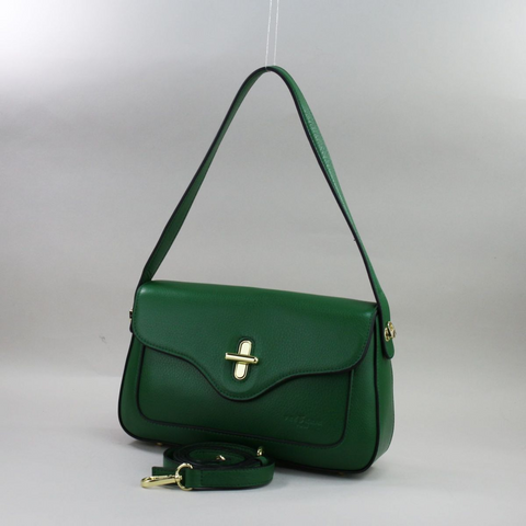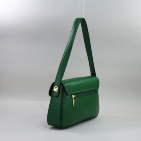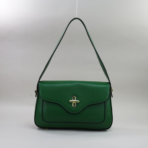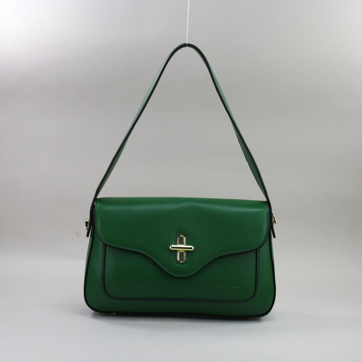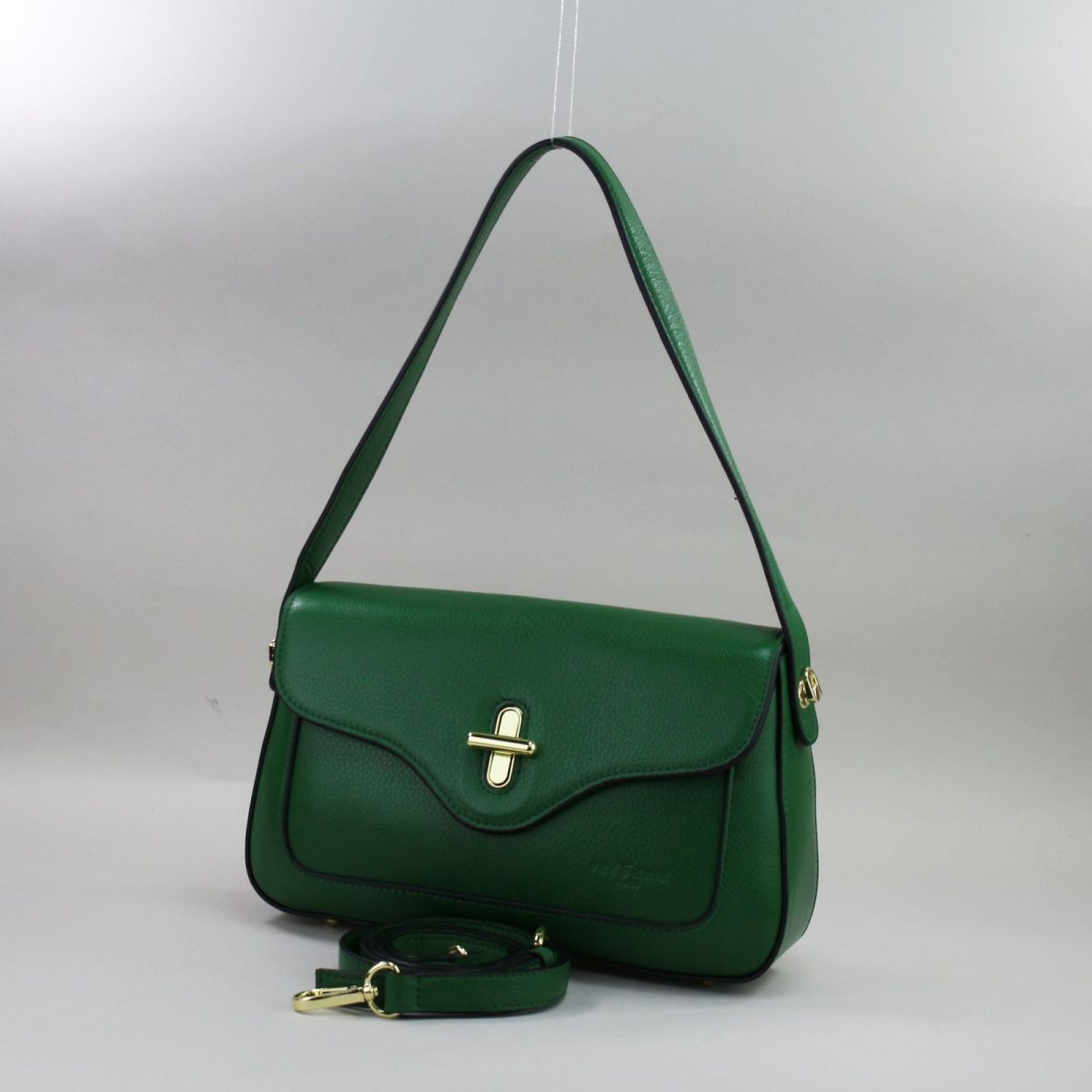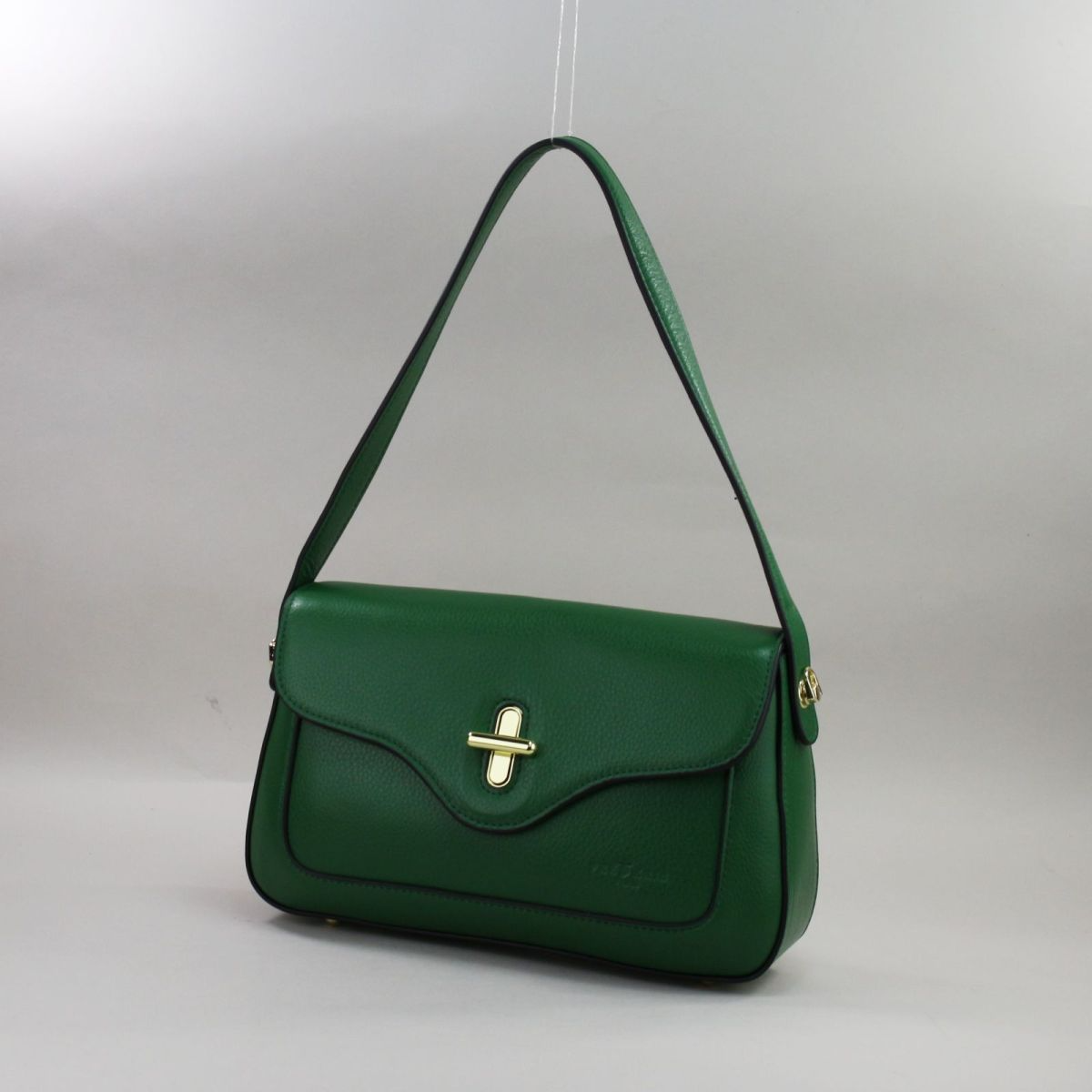 Žalios spalvos natūralios odos kompaktiška rankinė su auksinės spalvos furnitūra Išpardavimas